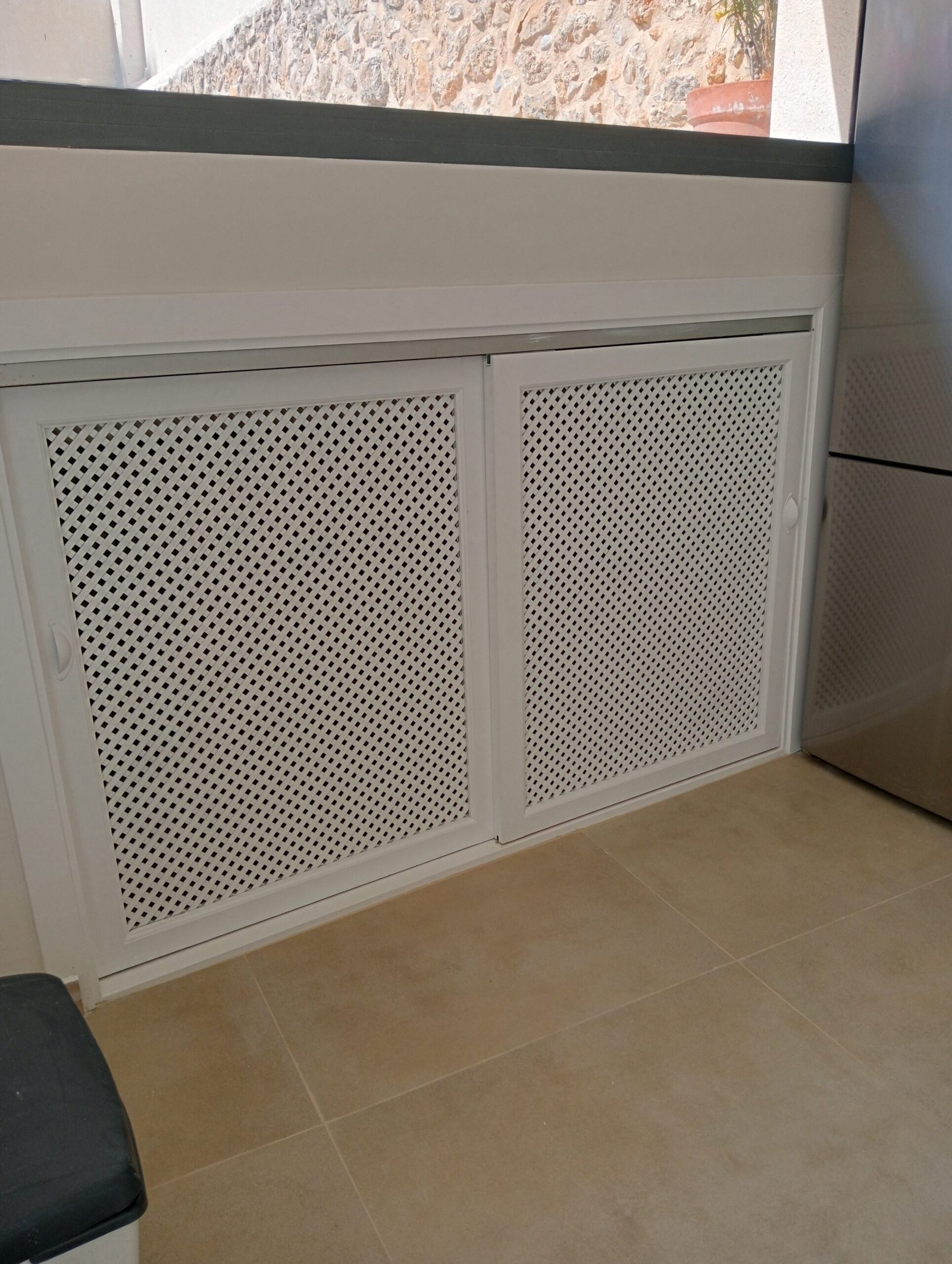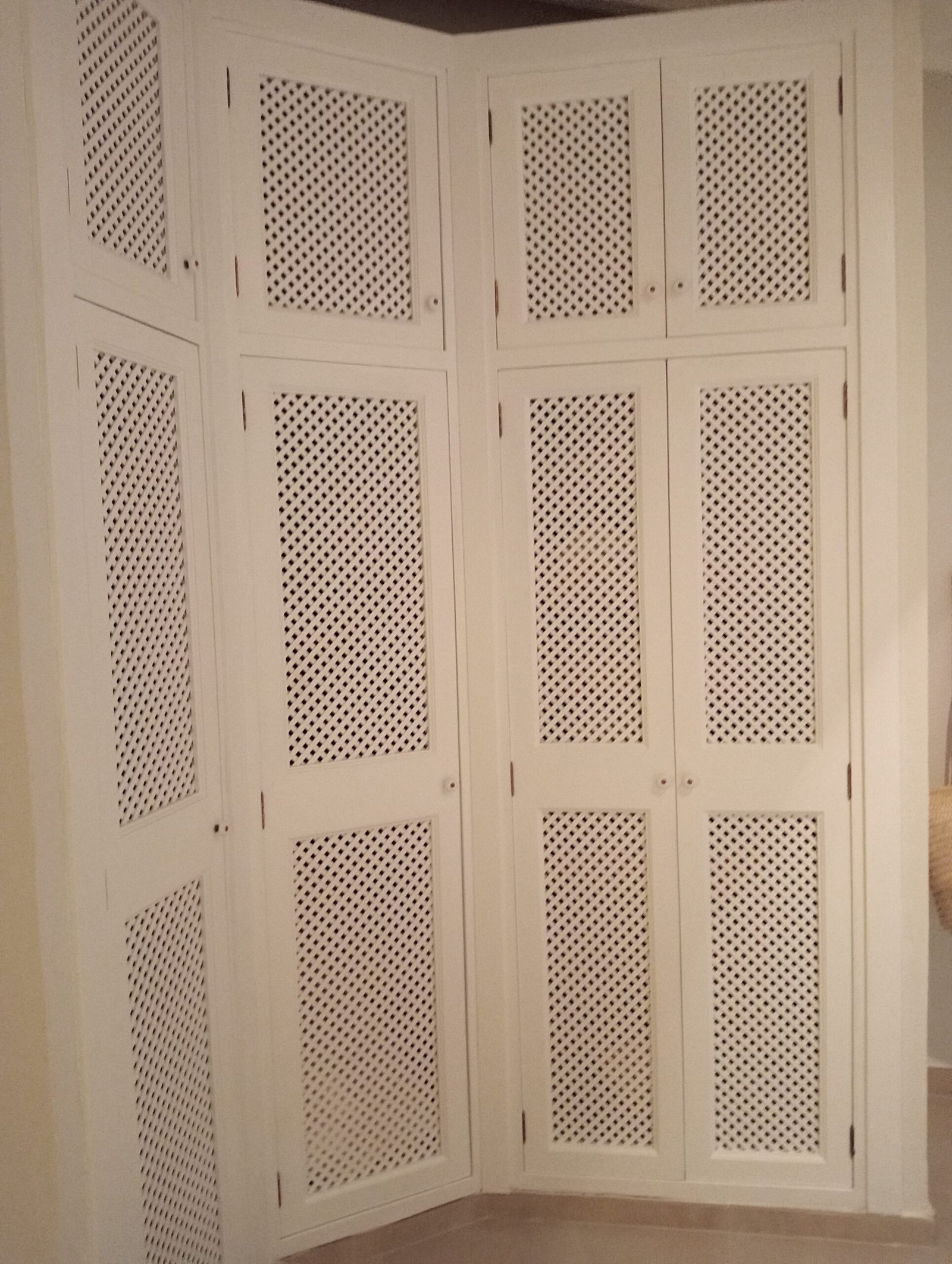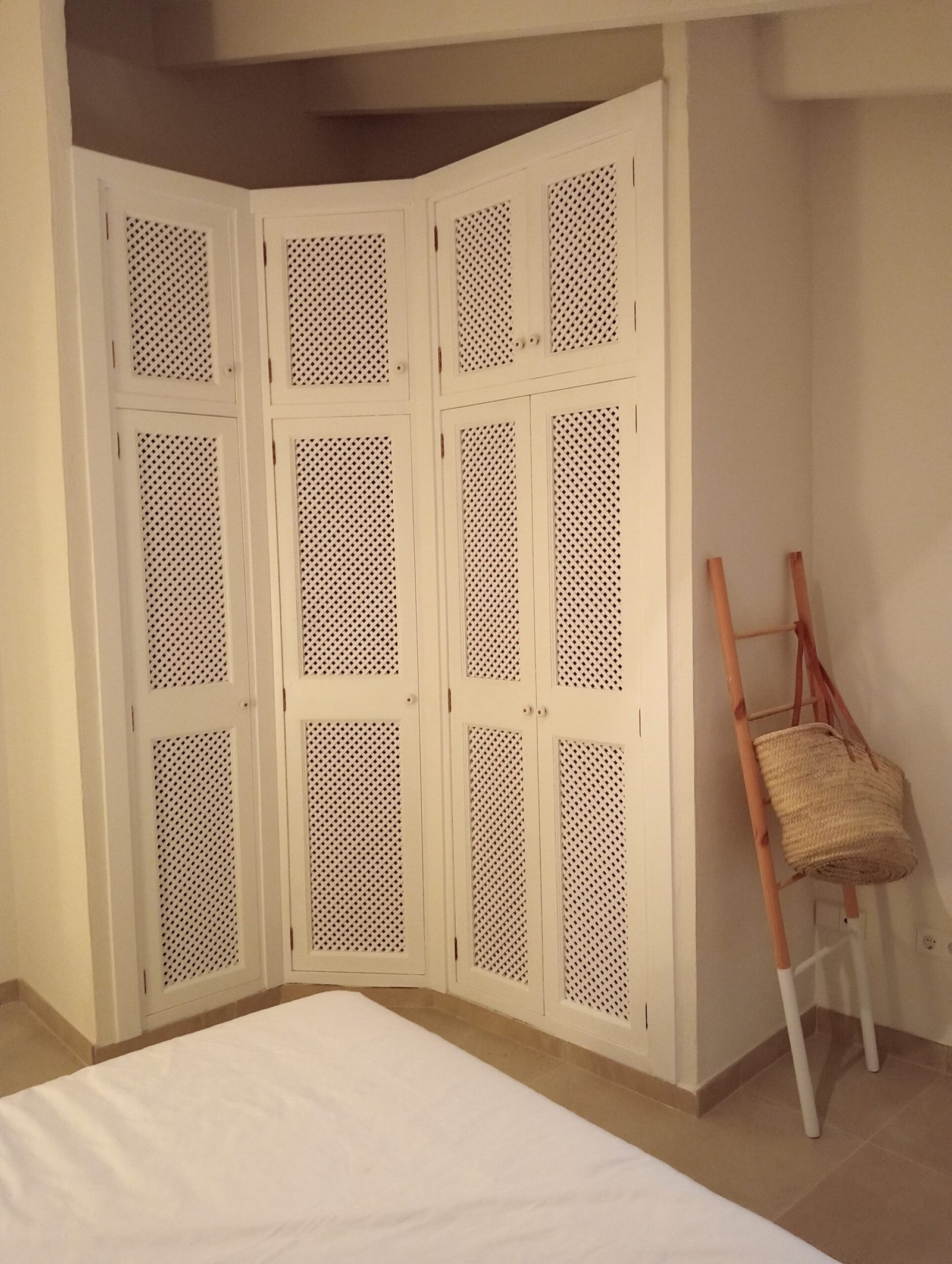 - Armario de madera lacado en blanco y sustitución de vidrios por celosía, Casa de pueblo en Mallorca. 7Catorce Proyectos